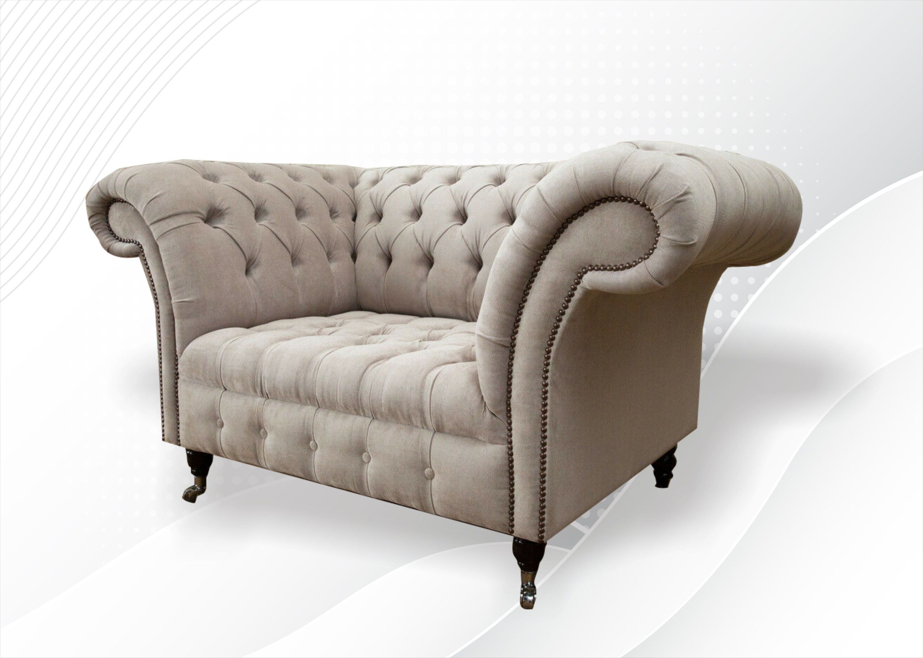 Chesterfield Sessel Creme Stoff Textil Modern Wohnzimmer Luxus Neu Design Möbel