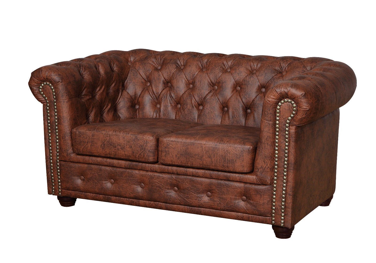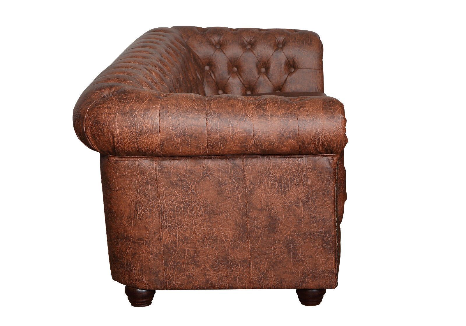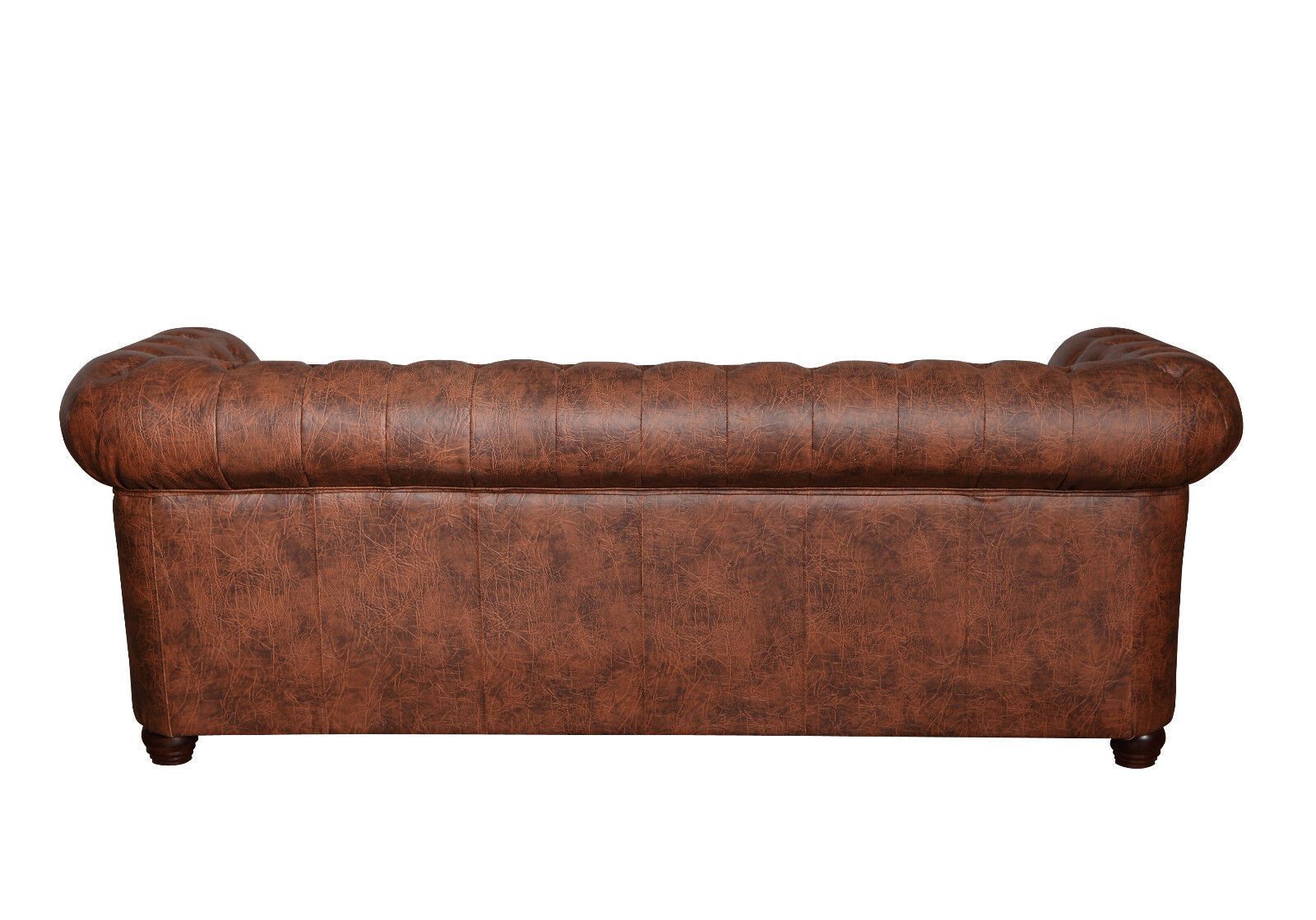 Chesterfield SET 1-2-3 SOFA SESSEL HOCKER Schlafsofa Industrie BRAUN Kunstleder