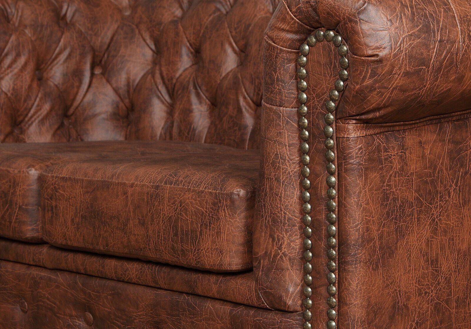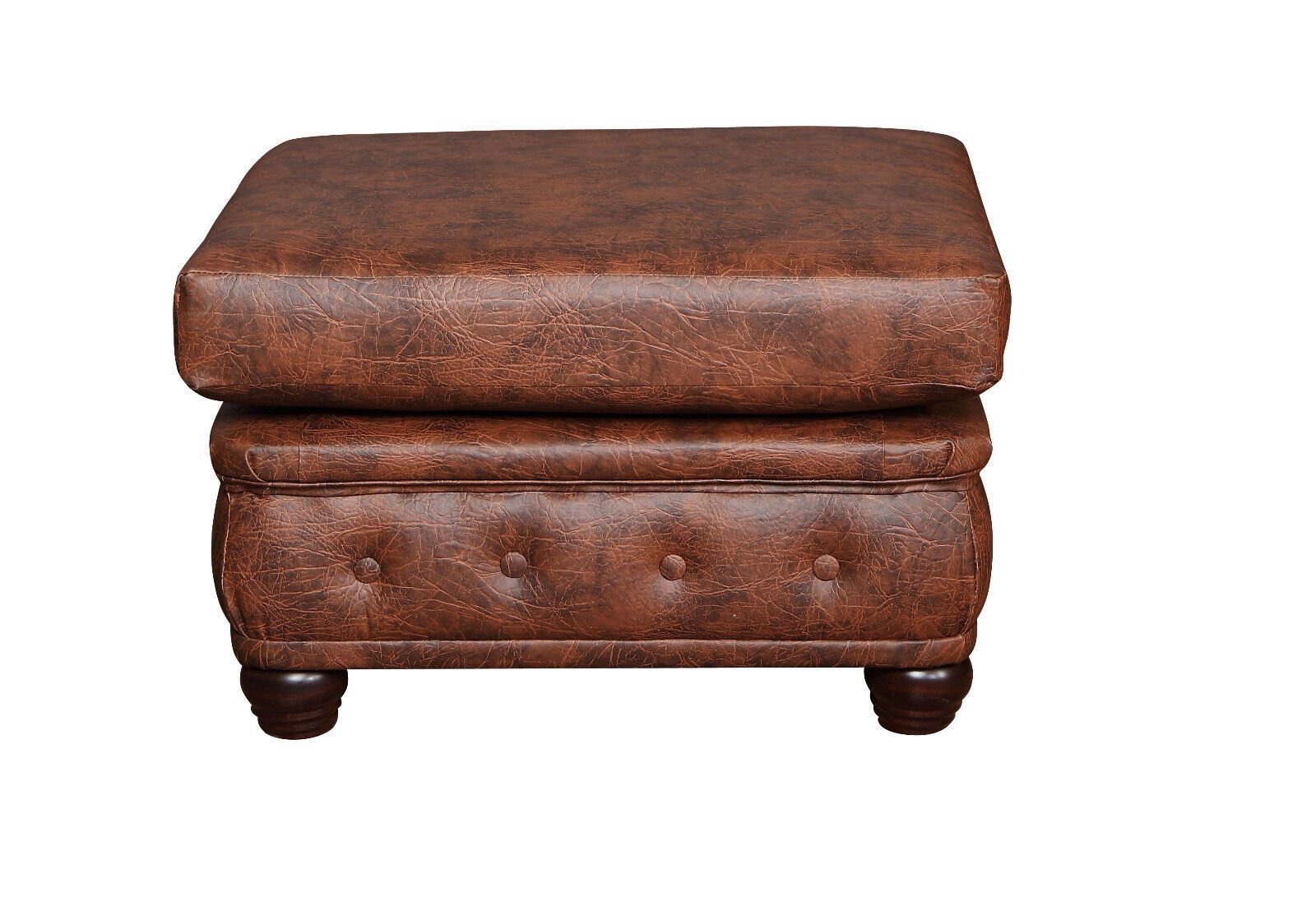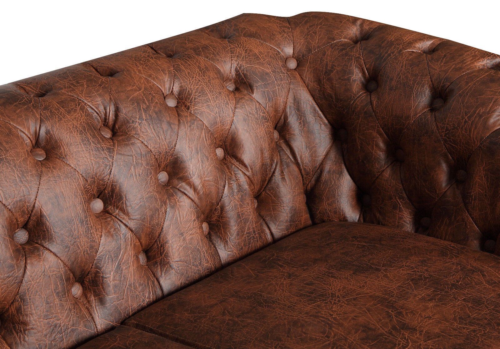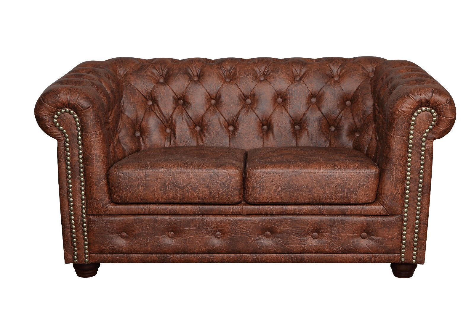 Chesterfield SET 1-2-3 SOFA SESSEL HOCKER Schlafsofa Industrie BRAUN Kunstleder