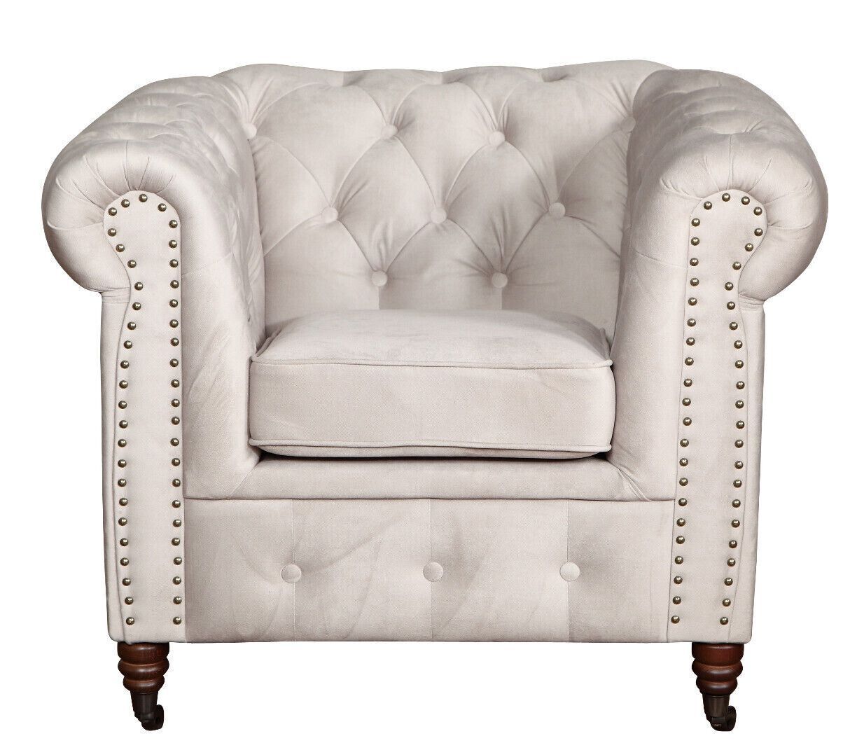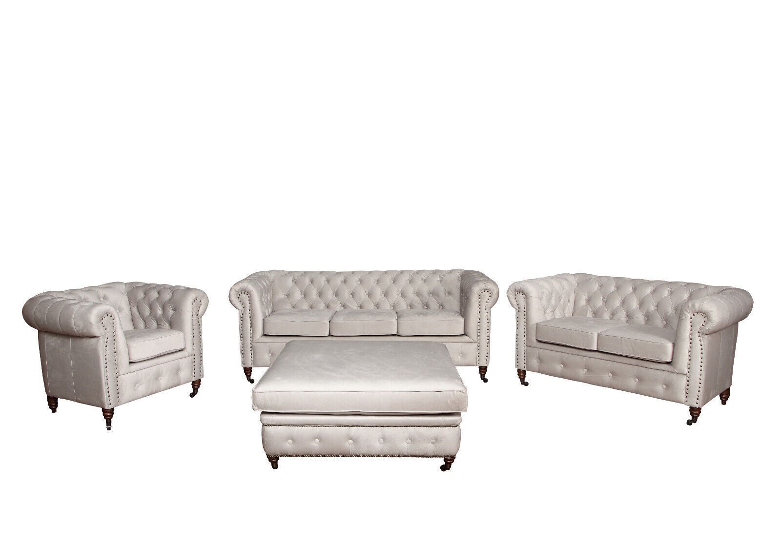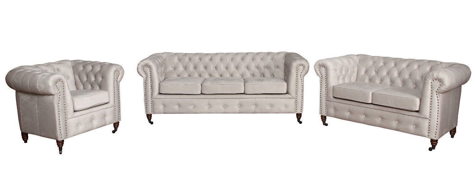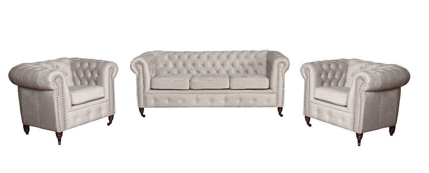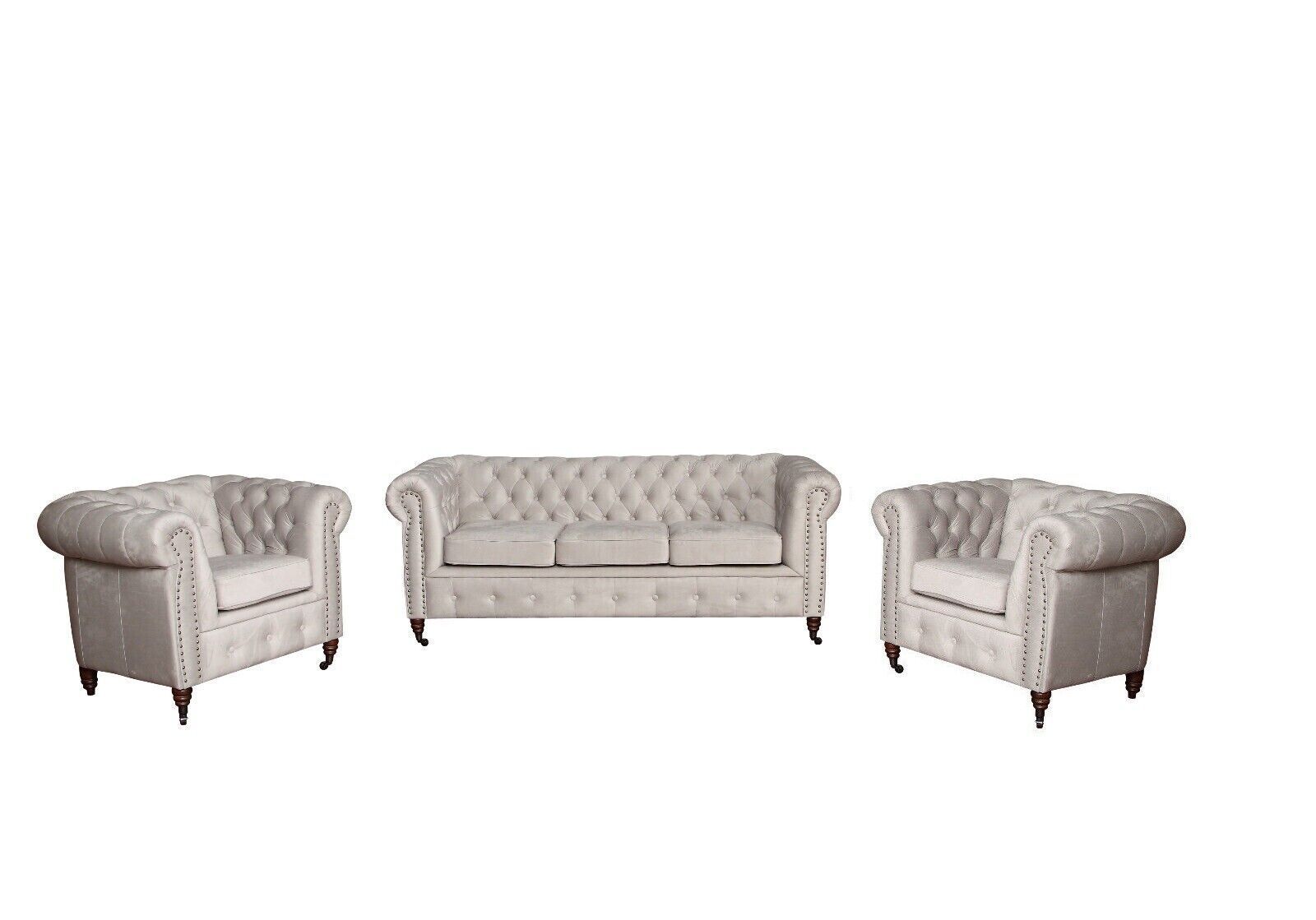 Chesterfield SET 3 + 2 + 1 Sitzer SOFA 3-1-1 Sessel Schlafsofa Stoff Weiss Büromöbel