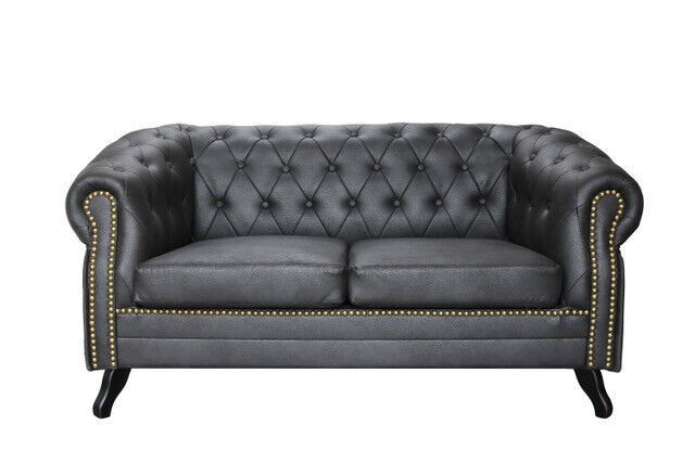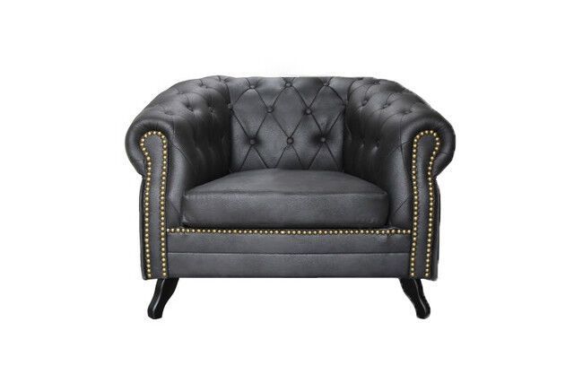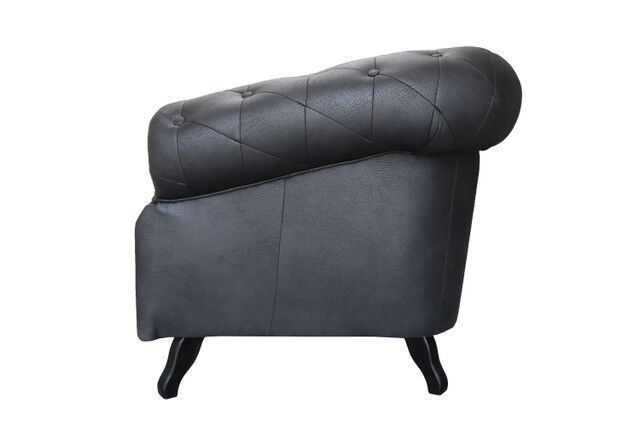 Chesterfield SET SESSEL 2 3 SITZER SOFA LEDER LOOK Vintage RETRO Schwarz GLANZ