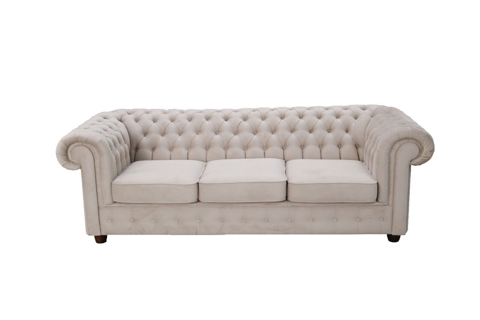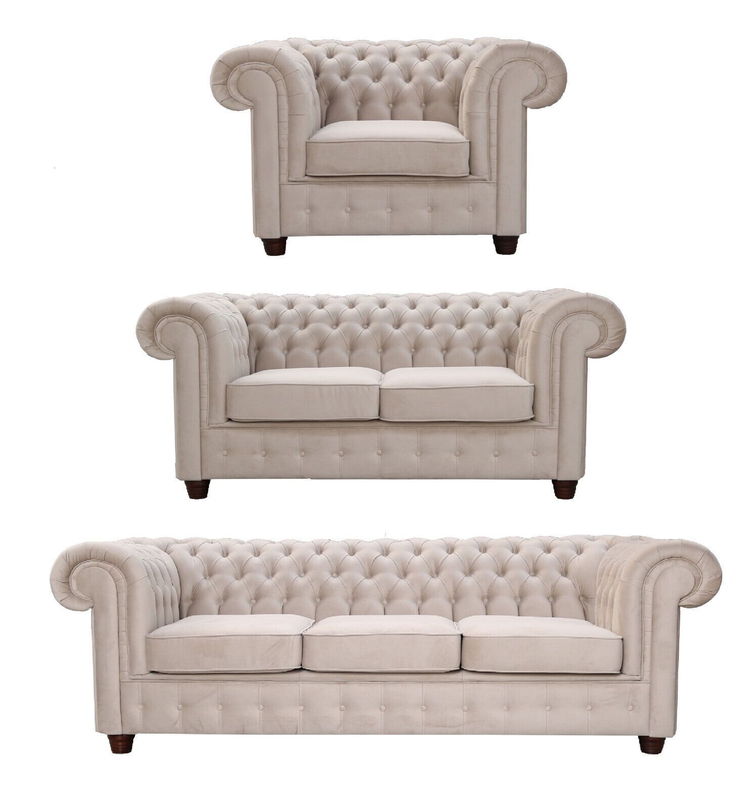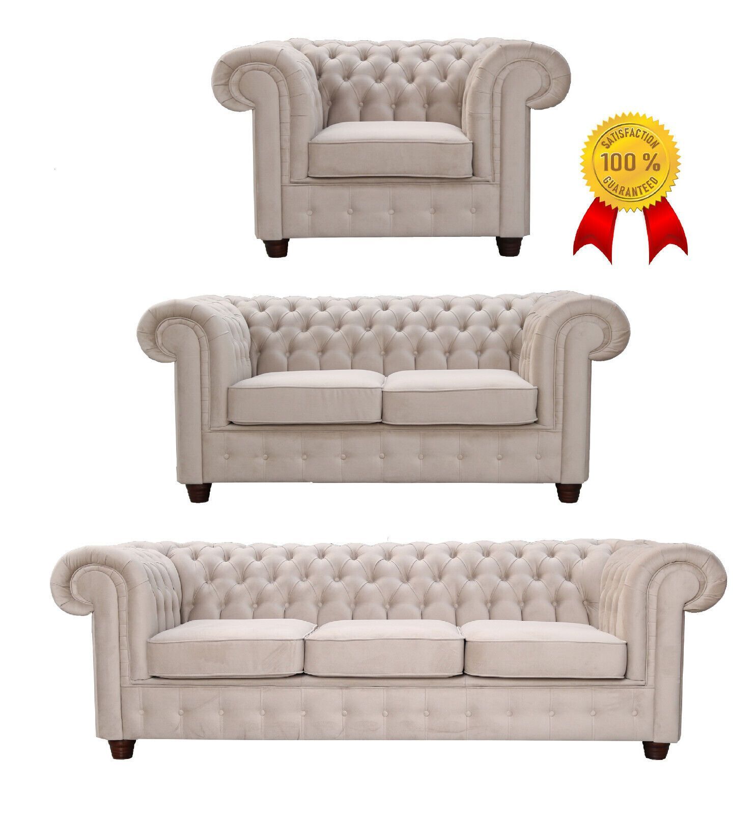 Chesterfield SET Sofa 1-2-3 SITZER Bett SESSEL CREME WEISS SAMT LUXURY Vintage
