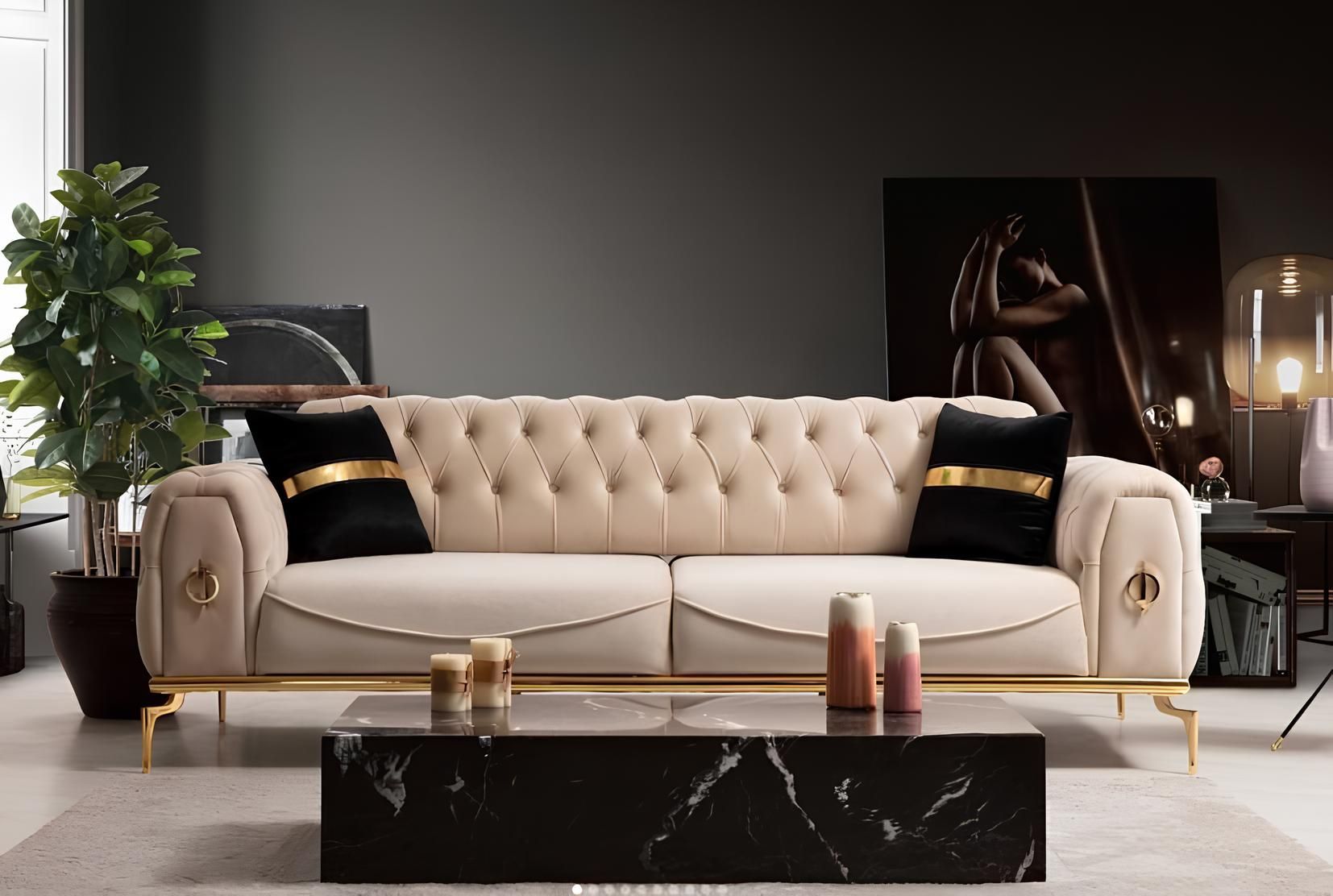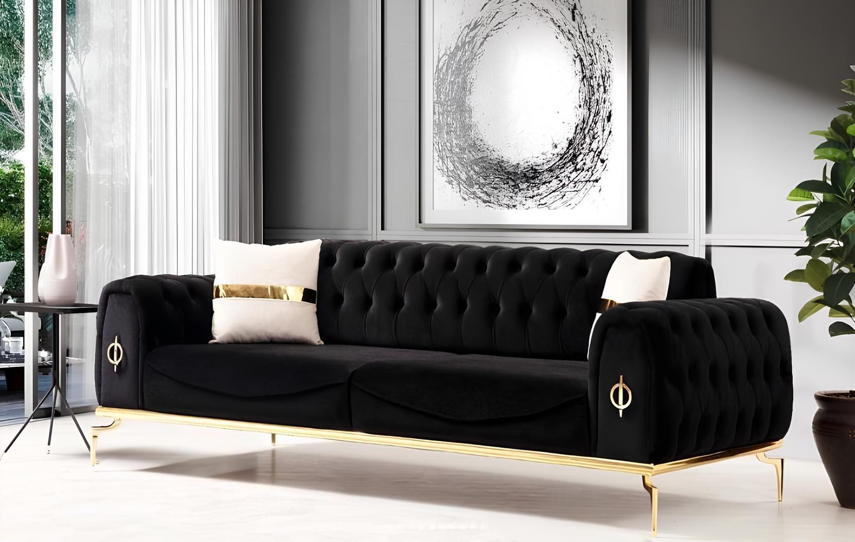 Chesterfield Sitzgruppe Luxus Sitzgarnitur Polstermöbel Dreisitzer Sessel
