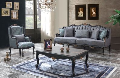 Polstersofa Chesterfield Garnitur Sofagarnitur Stoff Sofa Grau Set Neu