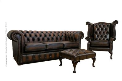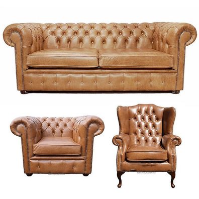 Chesterfield Sofagarnitur Leder Textil Chesterfield Komplett Set Sofa Couch 439