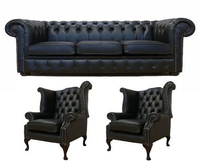 Exklusive Schwarze Chesterfield Sofagarnitur Moderne Couchen Luxus Set