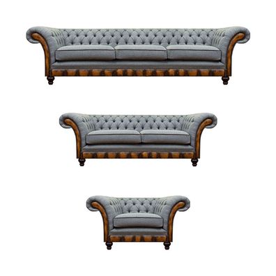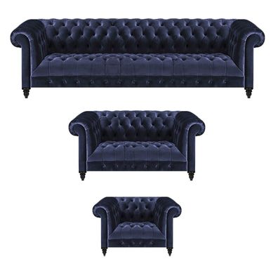 Chesterfield Blau Sofagarnitur 3tlg Set Wohnzimmer Einrichtung Polstermöbel