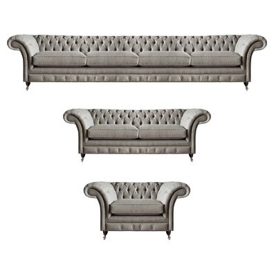 Wohnzimmer Sofagarnitur Polstersofa Sofa Chesterfield Set Grau Stoff