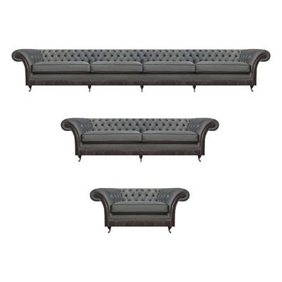 Design Polstermöbel Grau Sofagarnitur Chesterfield Sofas Set Wohnzimmer