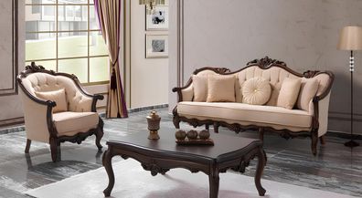 Polstersofa Sofa Sofagarnitur Couch Stoffsofa Beige Chesterfield Set