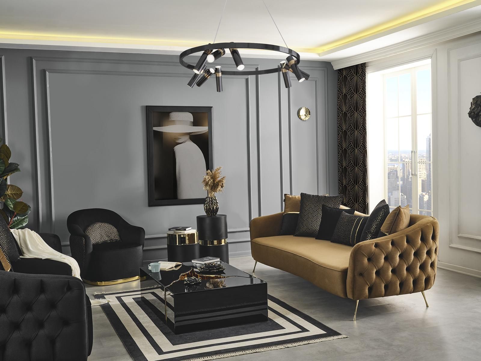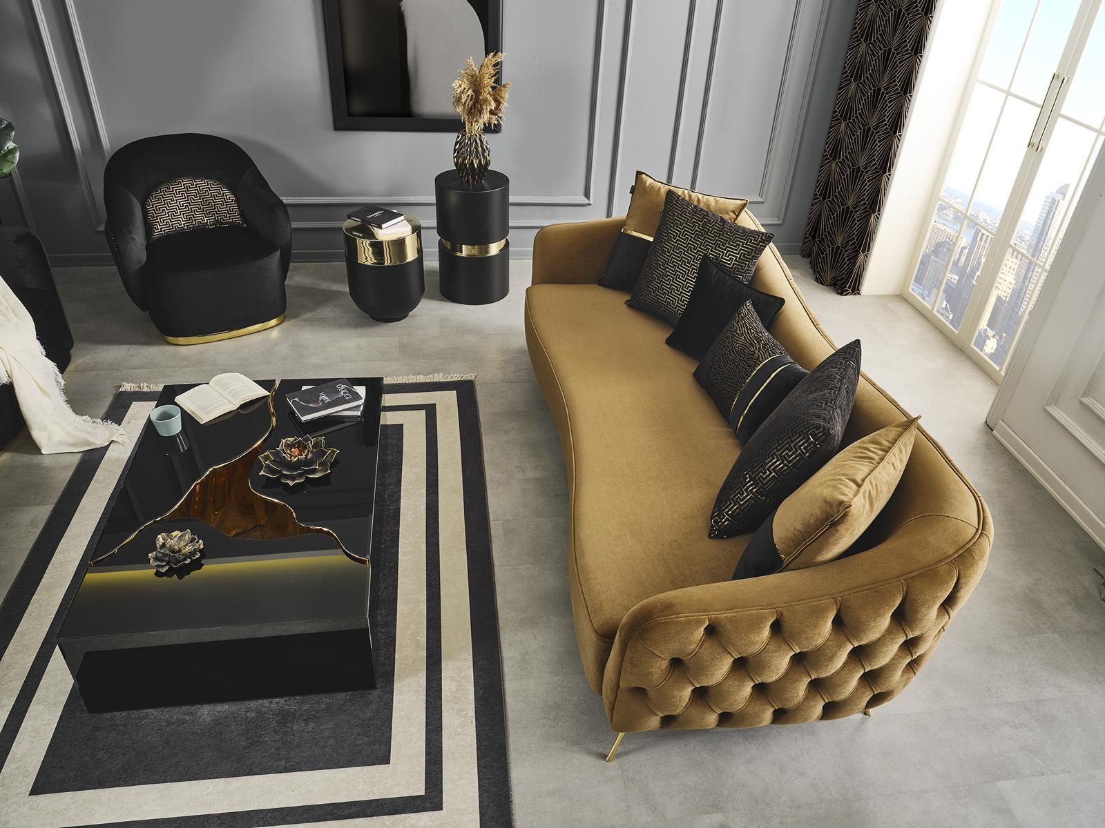 Chesterfield Sofagarnitur Sofa 3 Sitzer Sessel Blau Polyester Set 2tlg