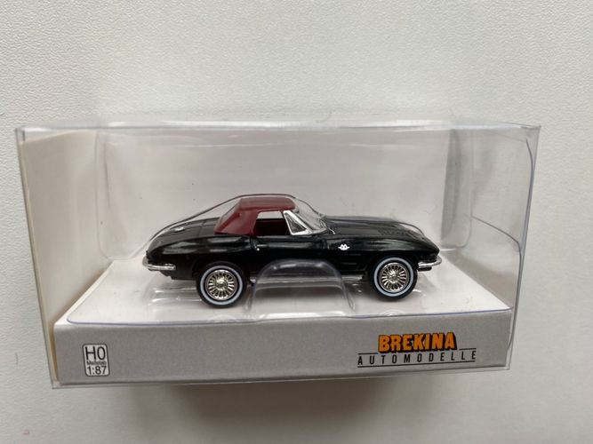 Brekina Chevrolet Corvette C2 Cabrio, schwarz 1962, H0 Auto Modell 1:87, Brekina 18025