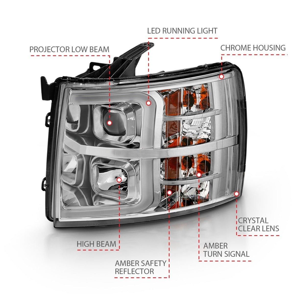 Chevrolet Silverado 2007 -2013 Scheinwerfer Projector LED Neon Tube chrom 07 13