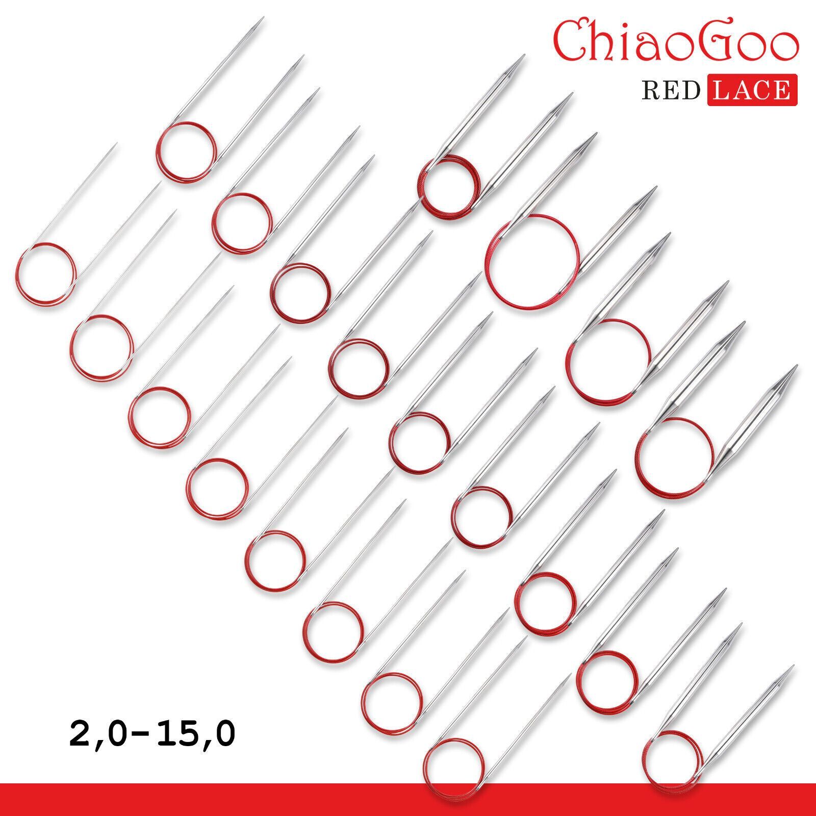 ChiaoGoo Red Lace Rundstricknadeln 150cm Edelstahl hochwertig rostfrei 21 Größen