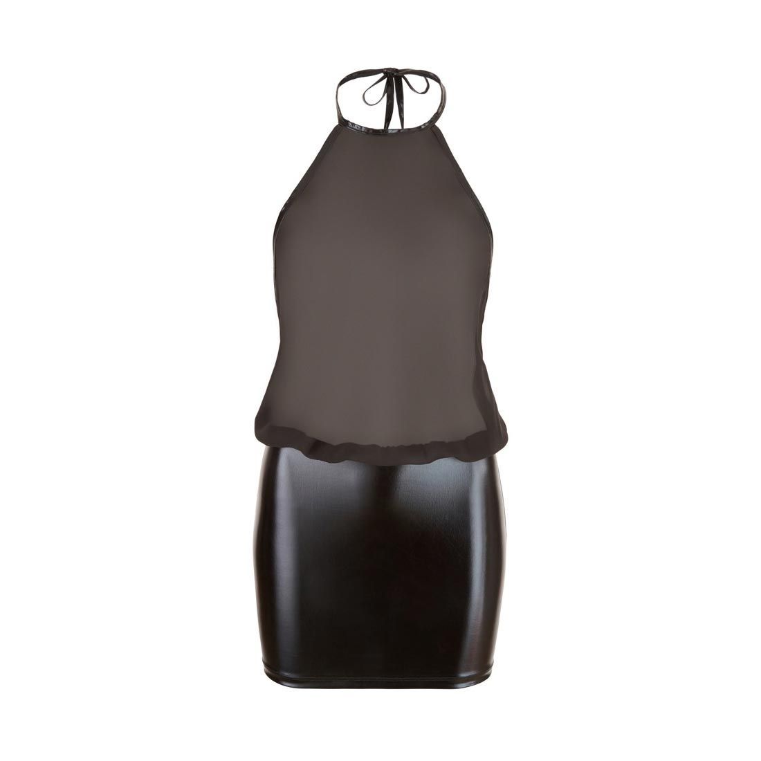 Cottelli Collection Chiffon Neckholder Kleid Wetlook Minikleid schwarz Partykleid S M L XL "Tatjana"