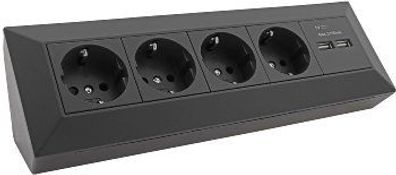 Steckdosenblock 4-Fach mit 2x USB-A, Anthrazit