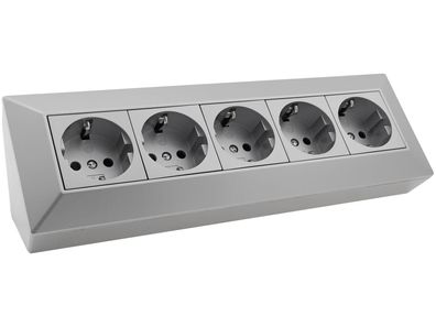 5-fach Steckdosenblock, silber 250V / 16A, Aufbaumontage
