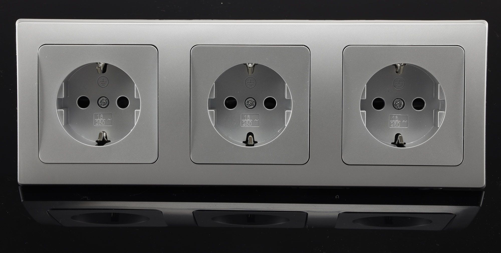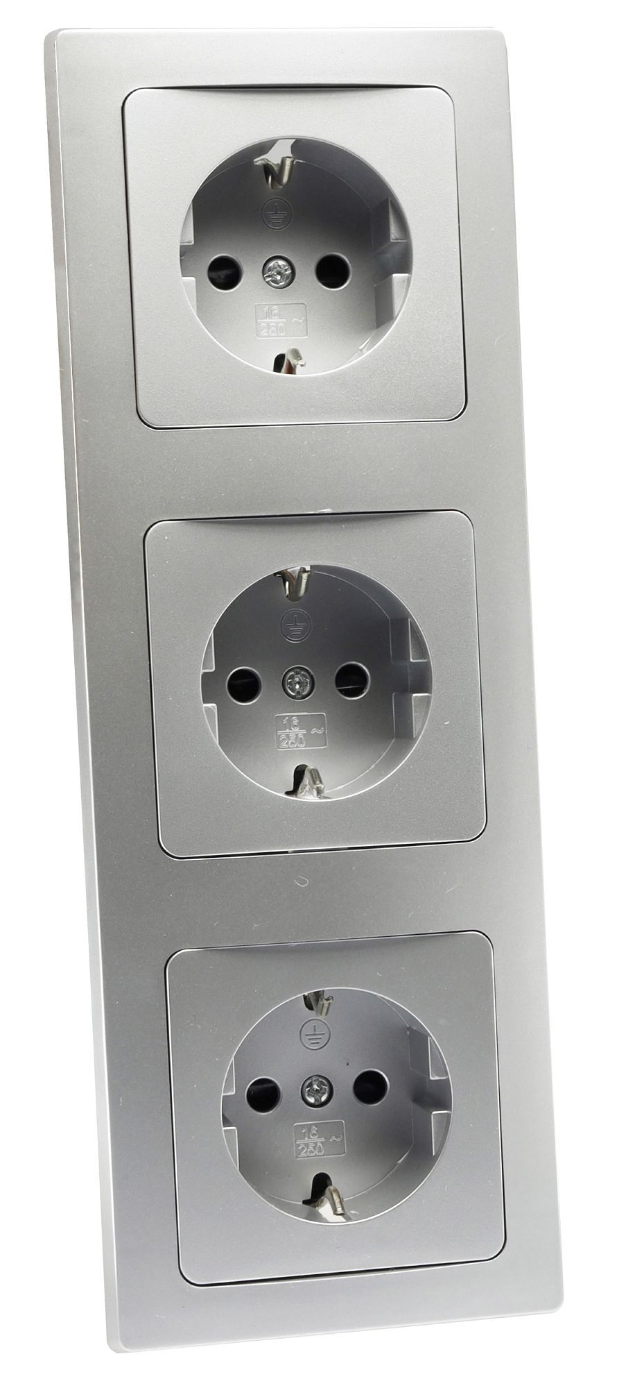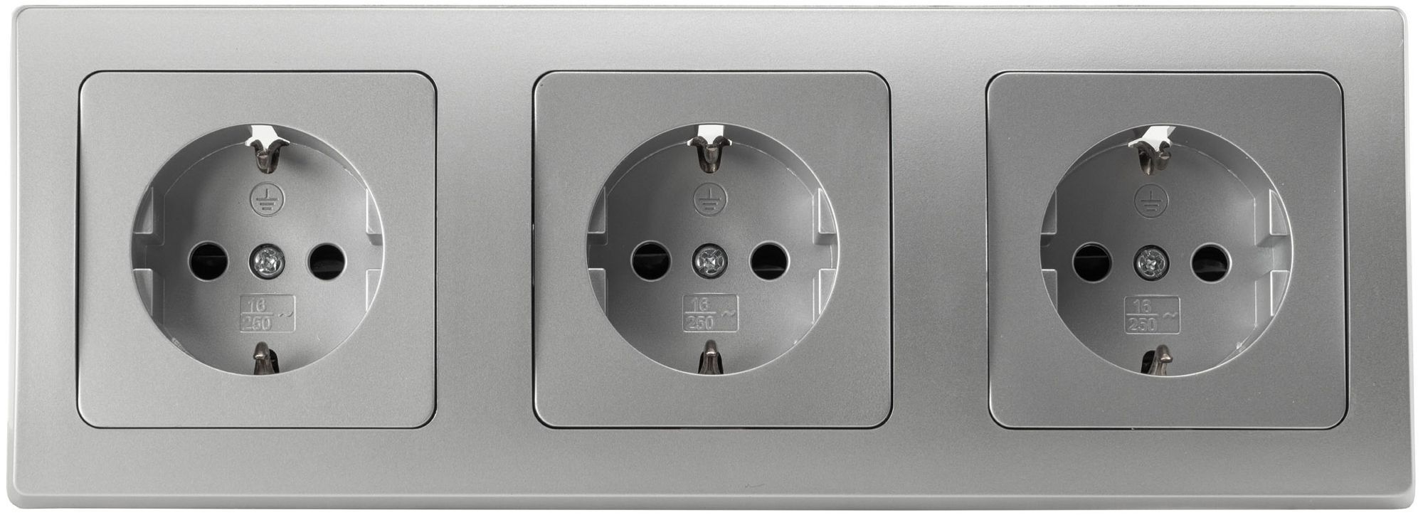 Chilitec ChiliTec DELPHI Set 3 Steckdosen + 3-fach Rahmen 250V / 16A, Steckanschluss, silber