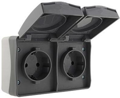 • Feuchtraum Doppel-Steckdose, IP44 250V / 16A, grau, Doppelsteckdose