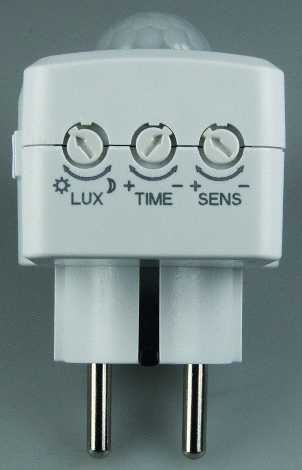 Zwischenstecker mit Bewegungsmelder 120°, 9m Reichweite , 230V/1200W, weiß