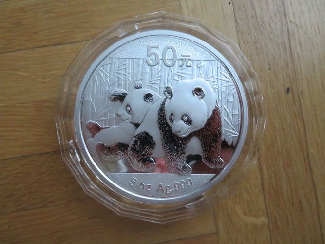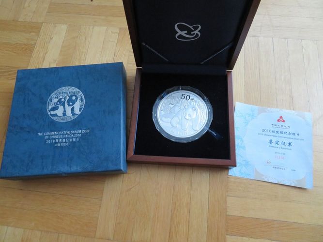 CHINA-Panda Münze 2010 50 YUAN 5 Unzen Münze PANDA 2010 999 1000 Silber AUFLAGE 10'000 Exemplare Mit Kapsel in Holzbox mit Zertifikat OVP Achtung! Versand nur 1x die Woche, immer Samstags.