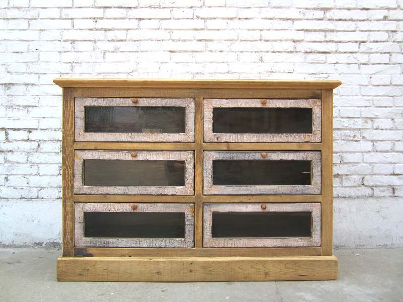 China große Schubladenkommode 6 Schébe Pinie Korpus hell Fronten dunkel