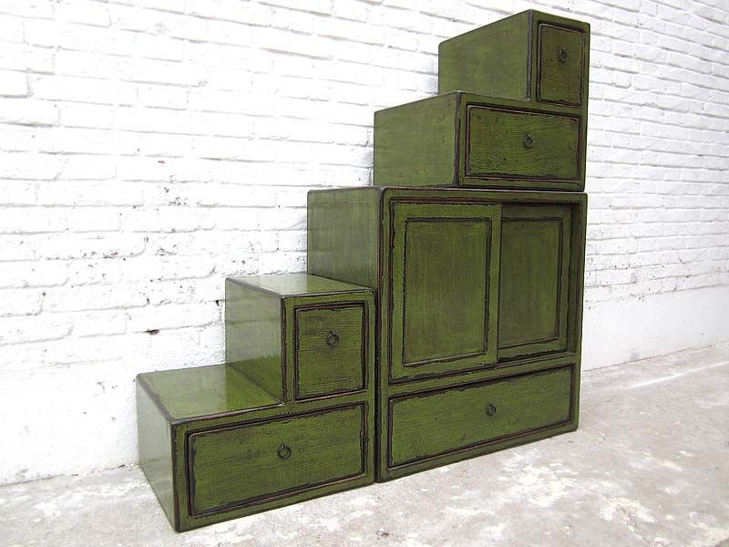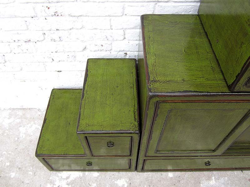 China grosse Treppen Kommode gruenshabby chic Abnutzungsspuren viele Schubladen beidseitig aufstellbar von Luxury Park