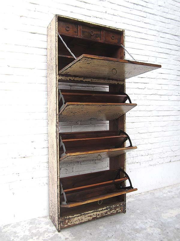 China grosser Schuhschrank altweiss lackiert shabby chic Optik 4 gross