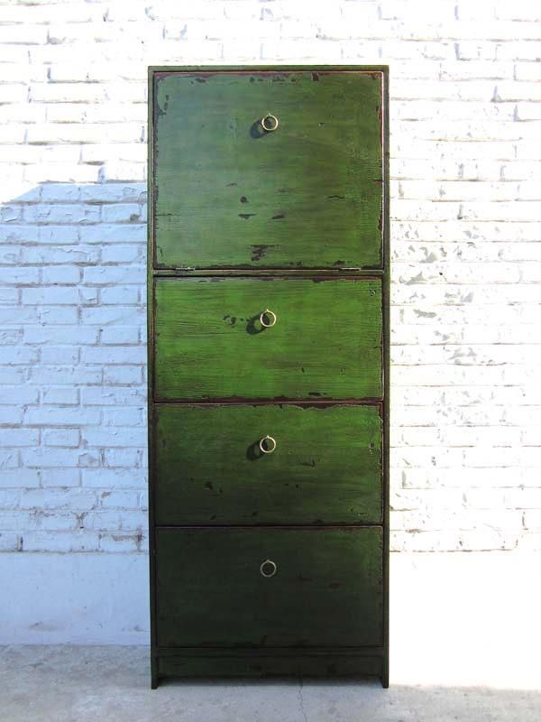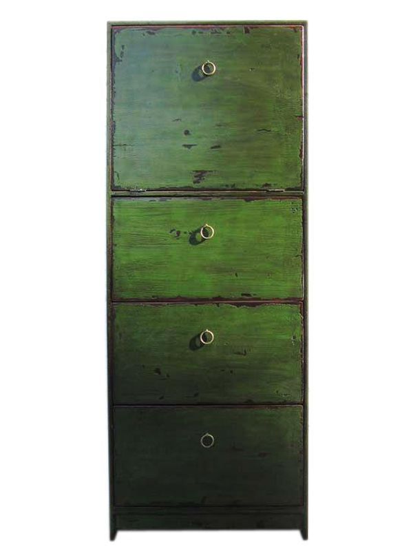 China hohe Kommode Schubladenturm 4 Schuebe Oberflaeche antikgruen