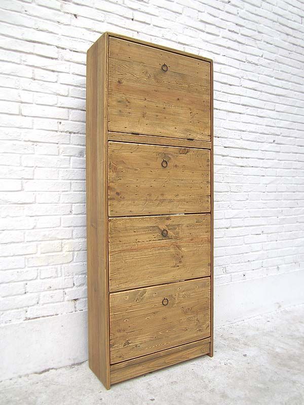 China hoher Schuhschrank Kommode Schubladenturm massive Pinie naturfar