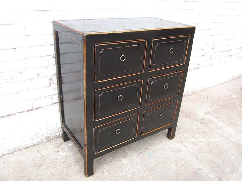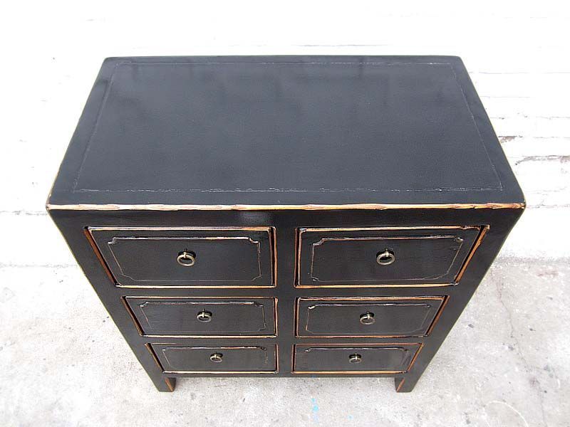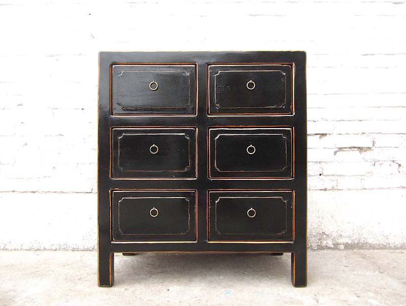 China klassische Kommode sechs Schuebe Sideboard antikschwarz Pinie