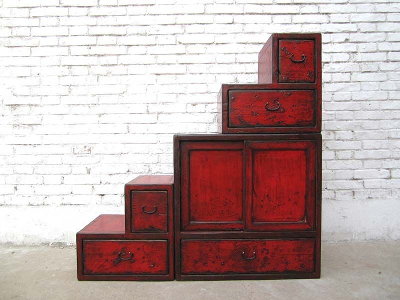 China kleine Treppen Kommode rotbraun viele Schubladen beidseitig aufstellbar