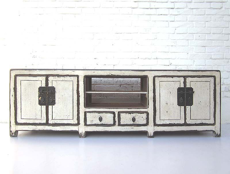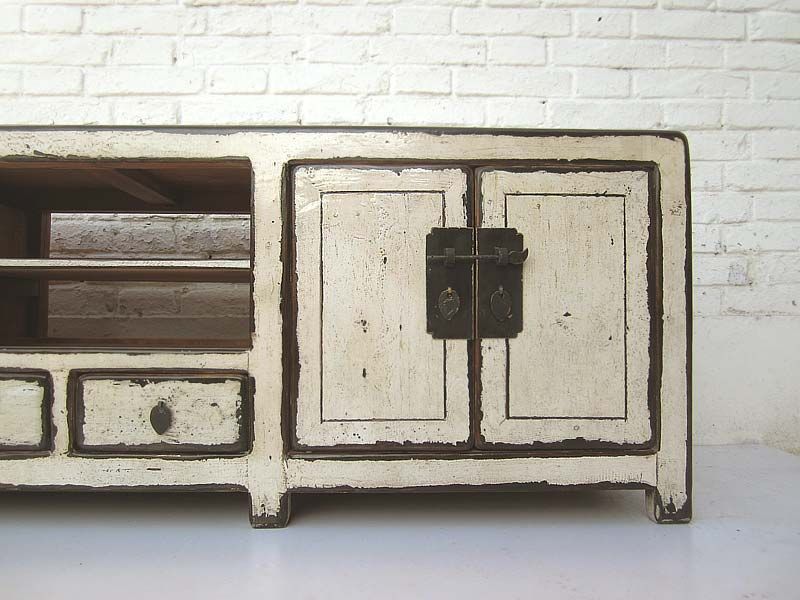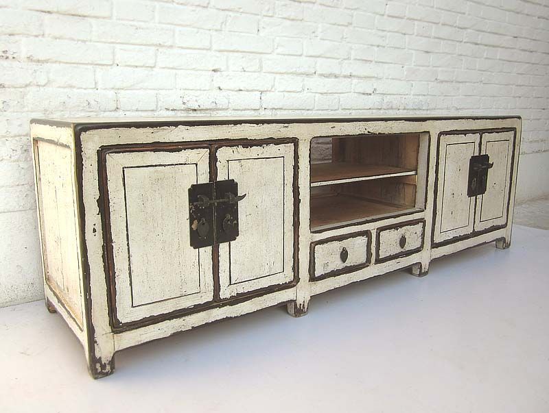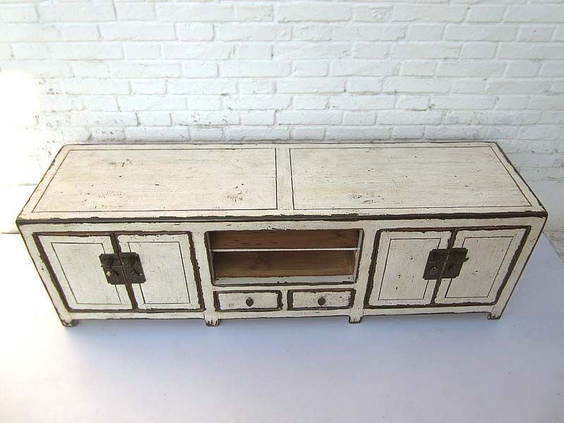 China Lowboard flache Anrichte fuer TV Bildschirm weiss lackierte Pinie Metallbeschlaege von Luxury Park