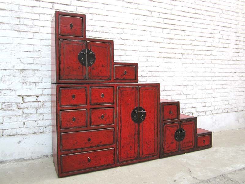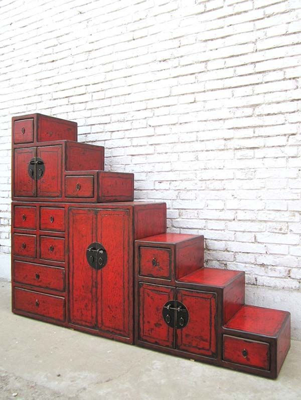 China Treppen Kommode rotbraun viele Schubladen beidseitig verwendbar