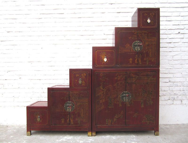 China Treppen Kommode Schrank rotbraun Antikfinish. Luxury Park