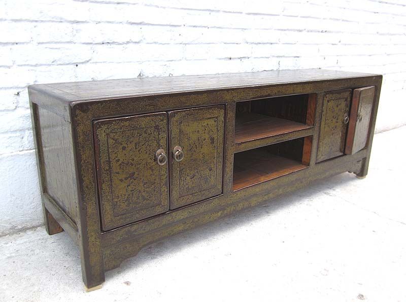 China TV Kommode Lowboard finish schwarz gruen vintage Pinienholz
