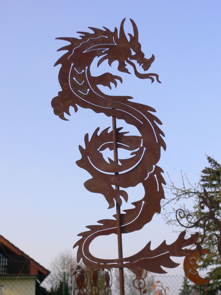 Chinesischer DRACHE Schlange 115cm Edelrost Rost Gartenstecker