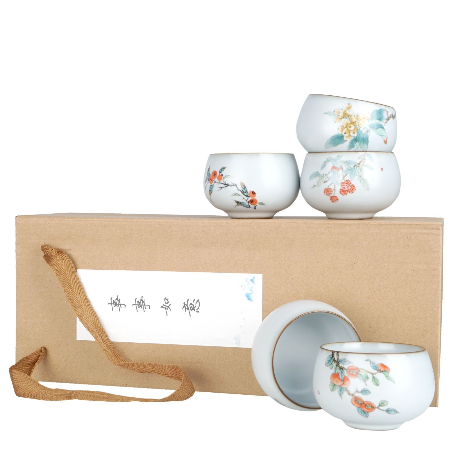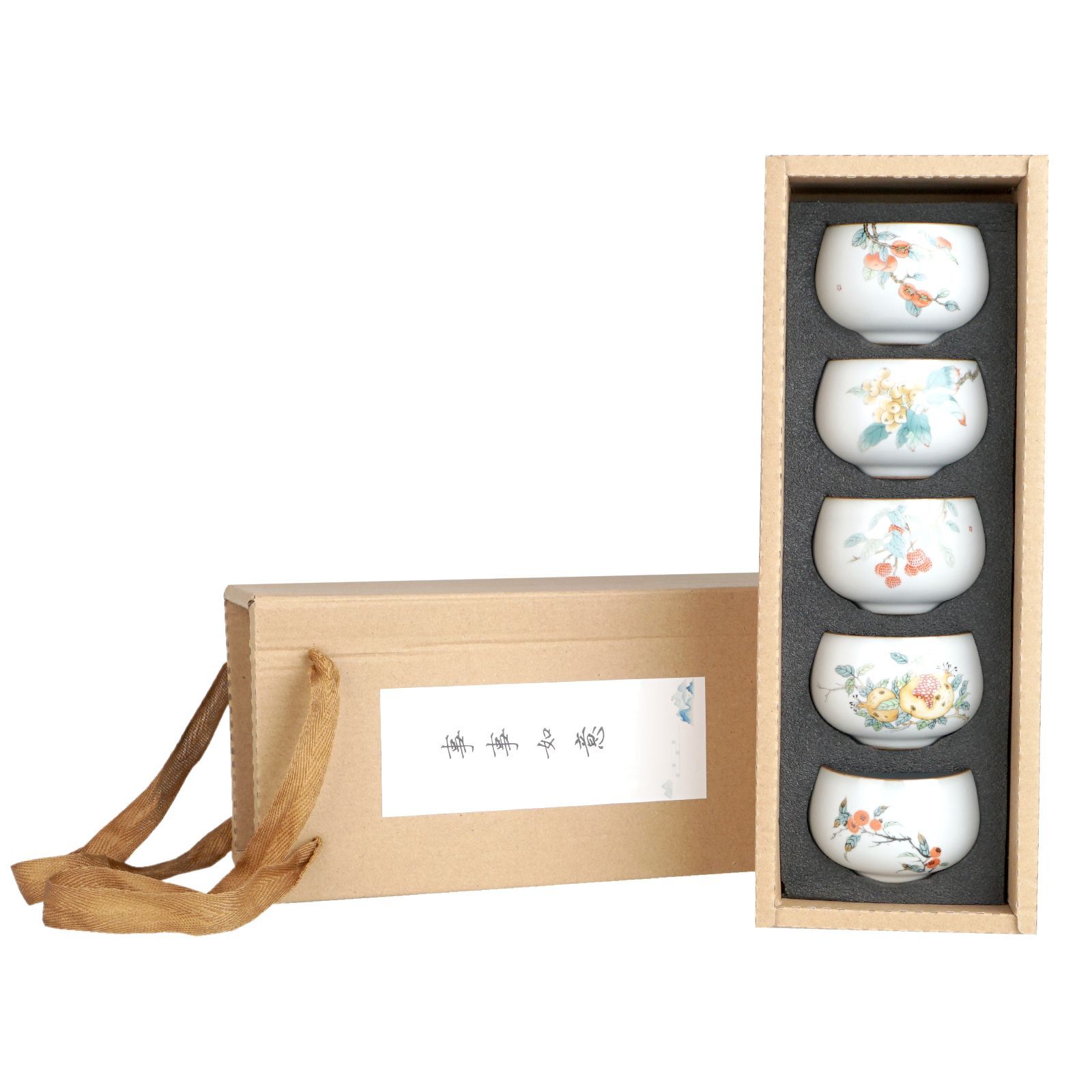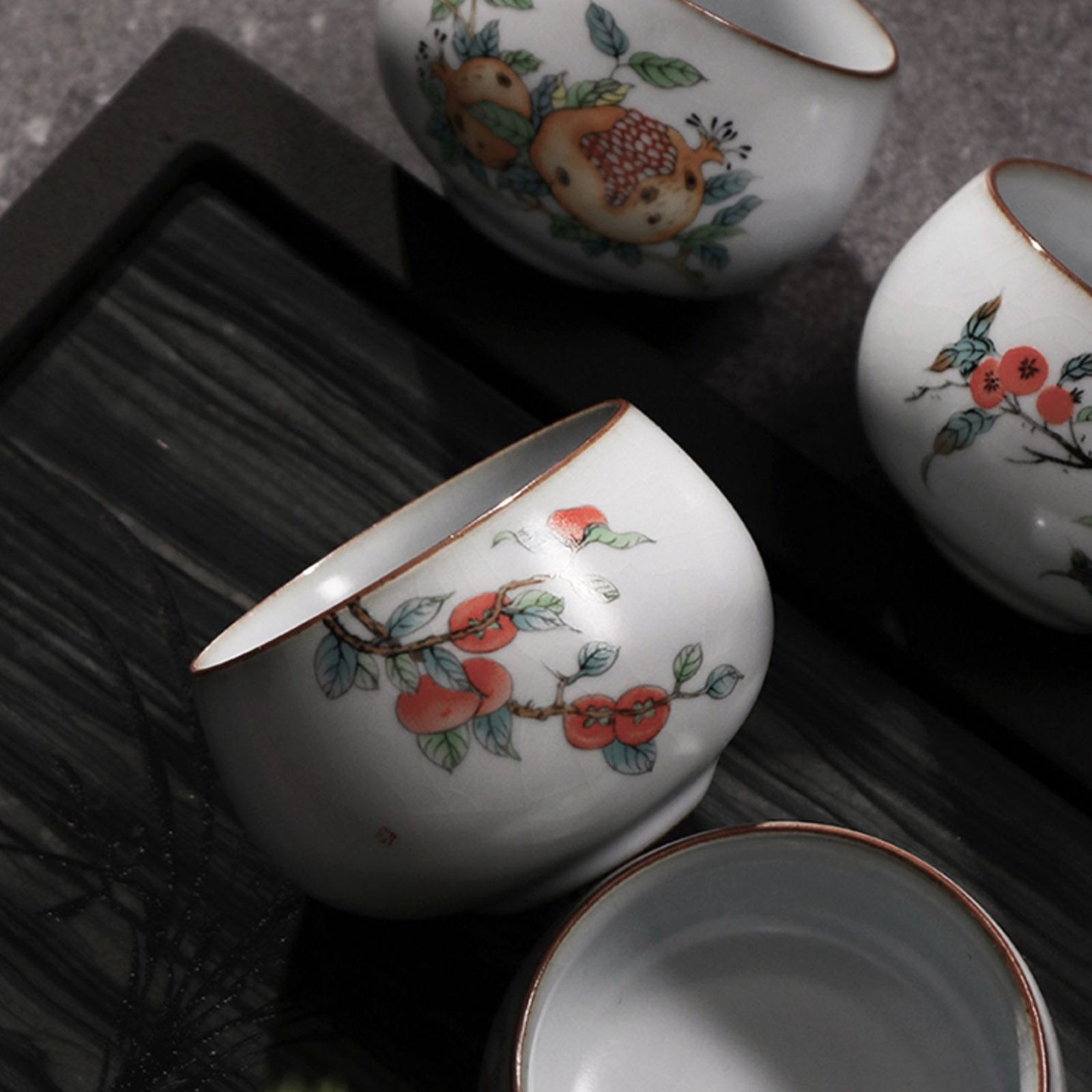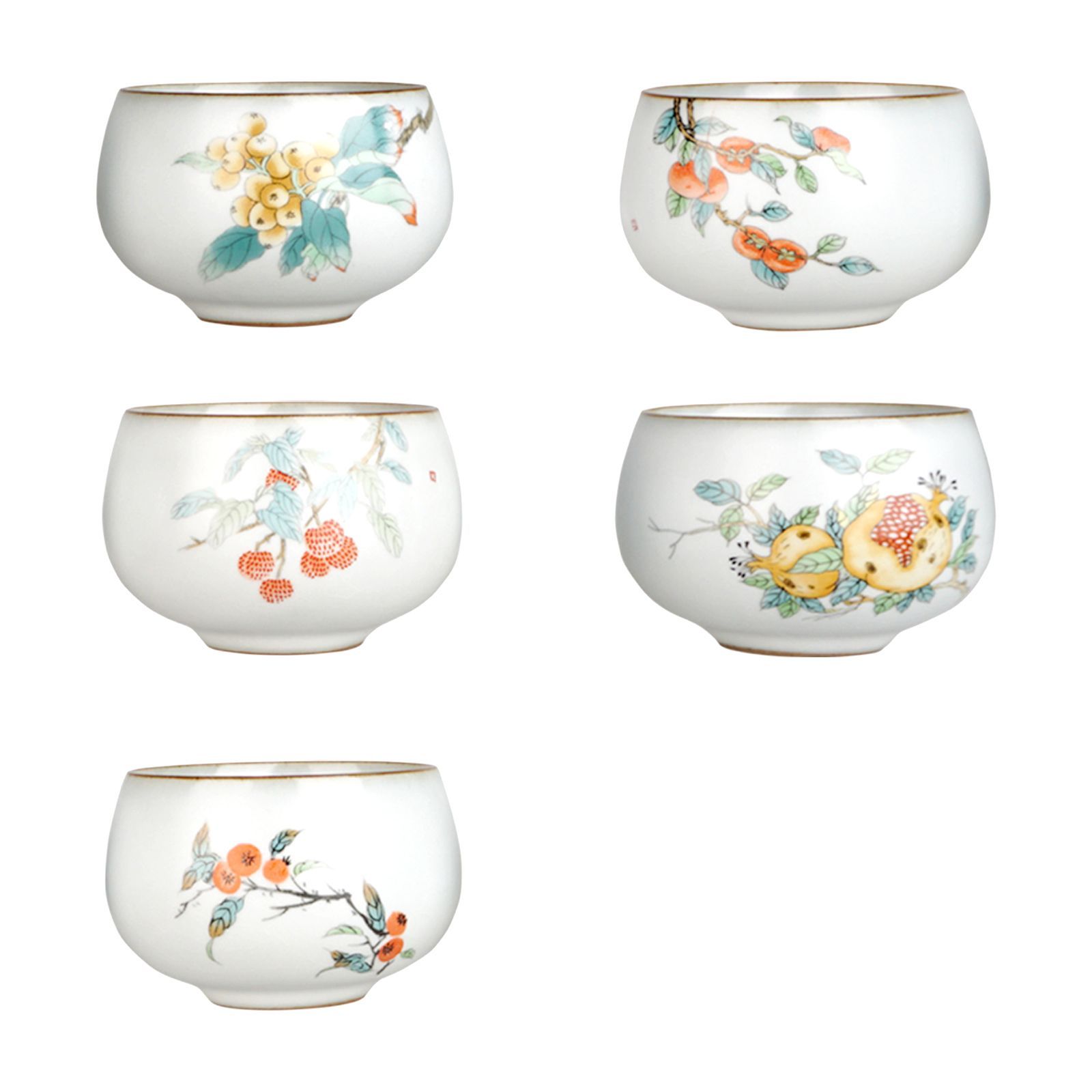 Chinesisches Teeschalen Set | Handbemalt mit Gongbi Malerei | 5 Stk