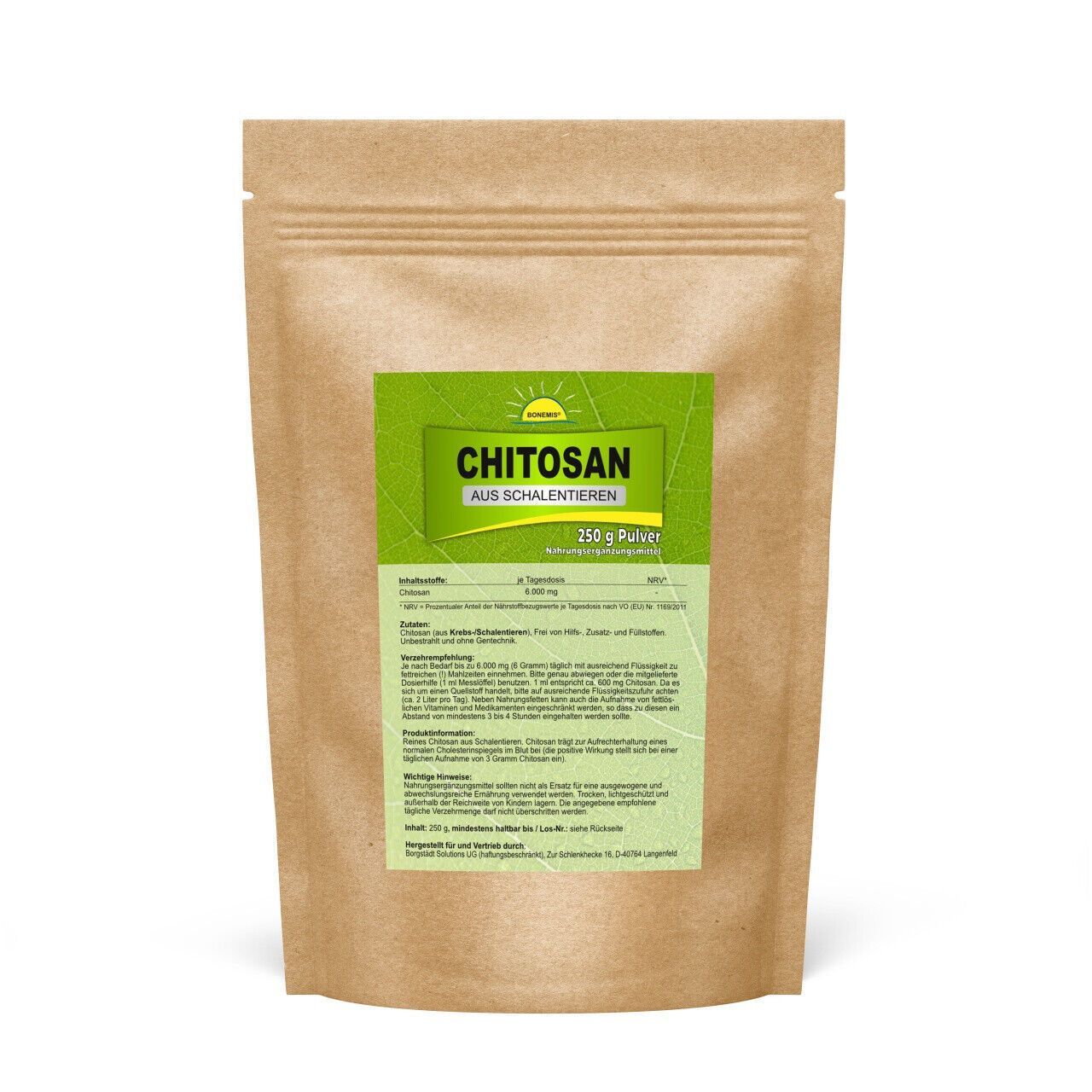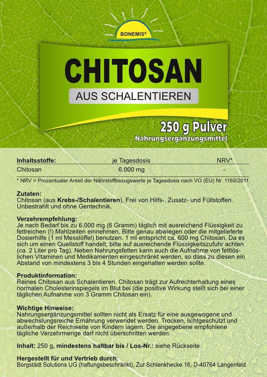 Chitosan (aus Schalentieren), ohne Zusatzstoffe, 250 Gramm Beutel, Bonemis®