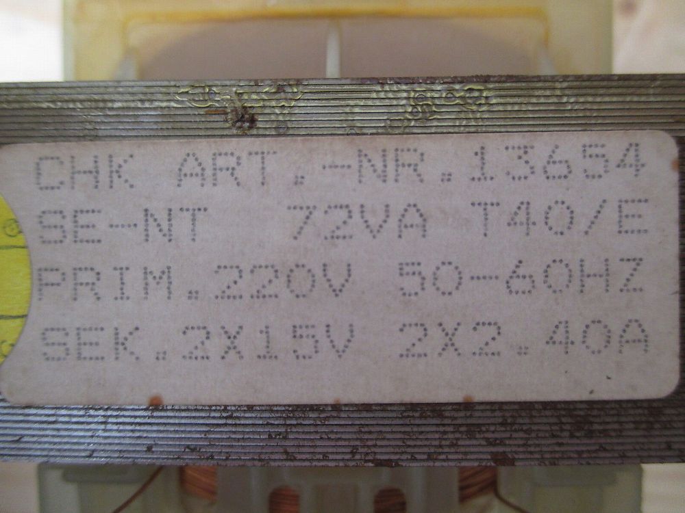 CHK Transformator Art. Nr. 13654 Trafo pri. 220 V sek. 2x15 V 72 VA T9/867