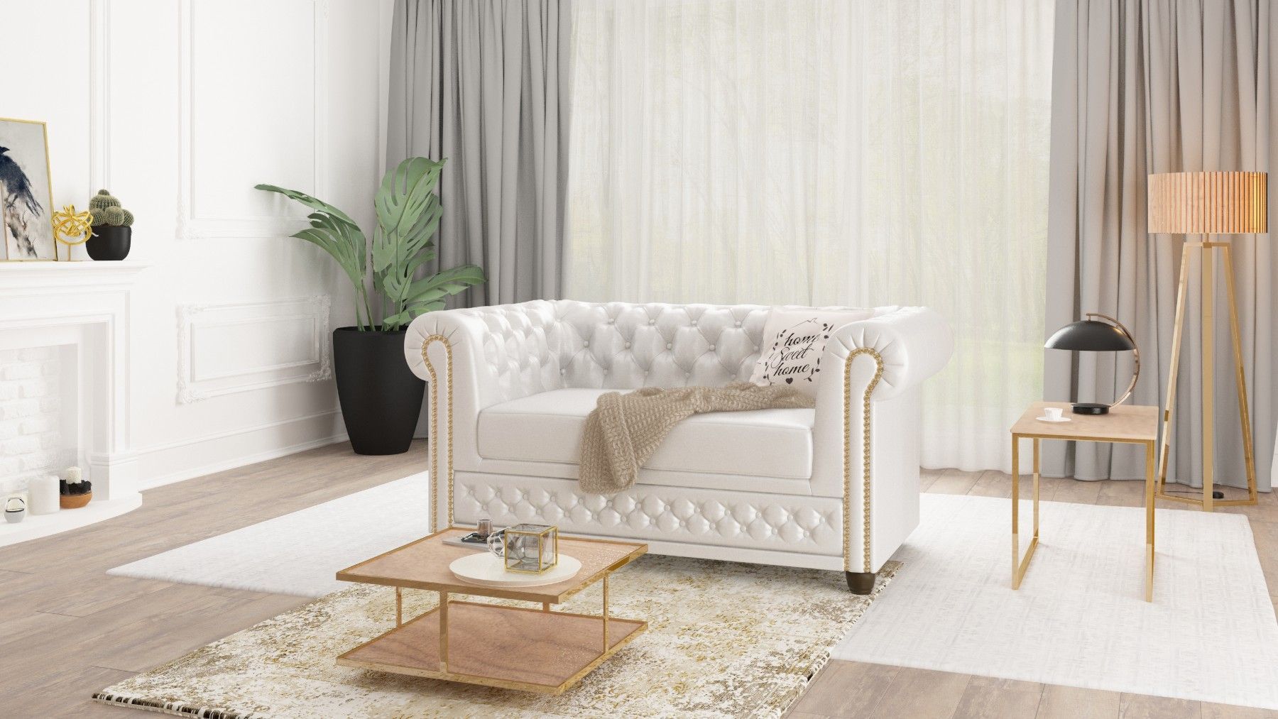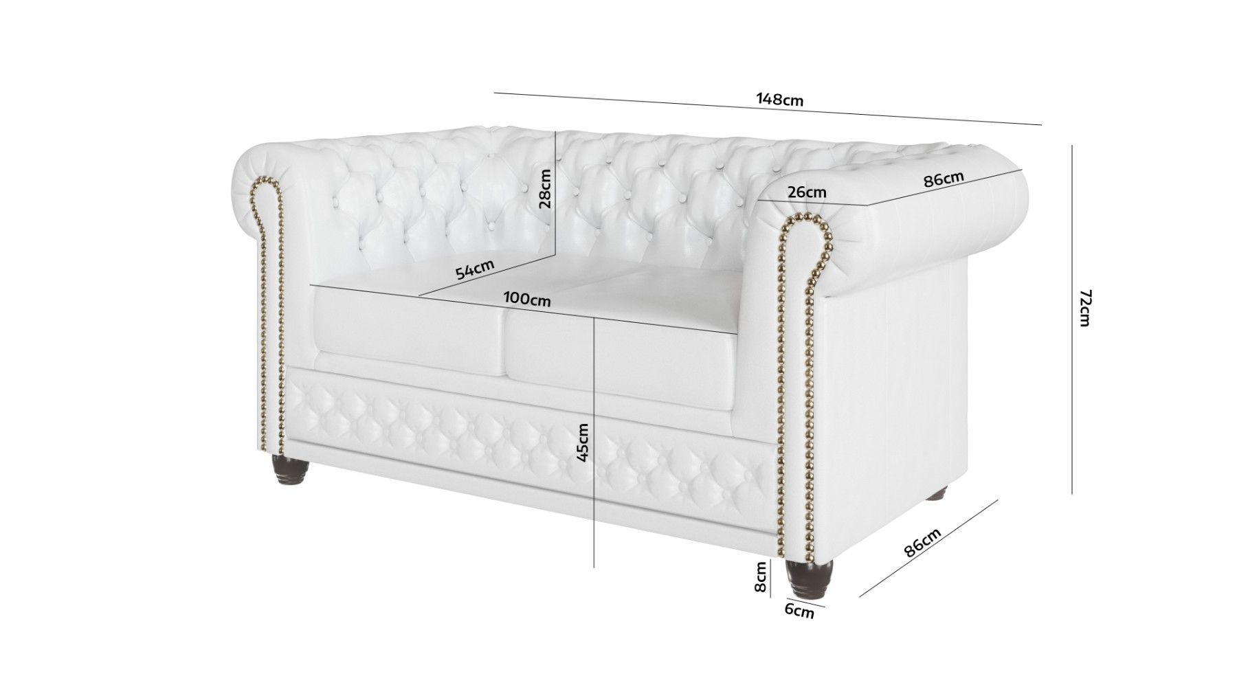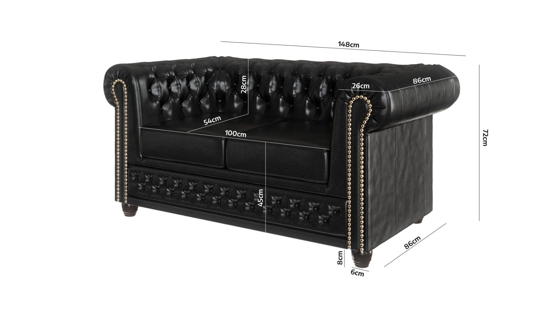 Chloe - Sofa 2 sitzer Chesterfield aus veganem Leder mit Holzfüßen