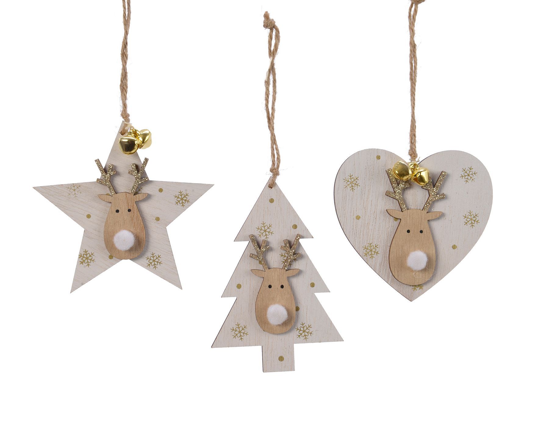 Christbaumanhänger Rentier Holz Glöckchen 3er Set