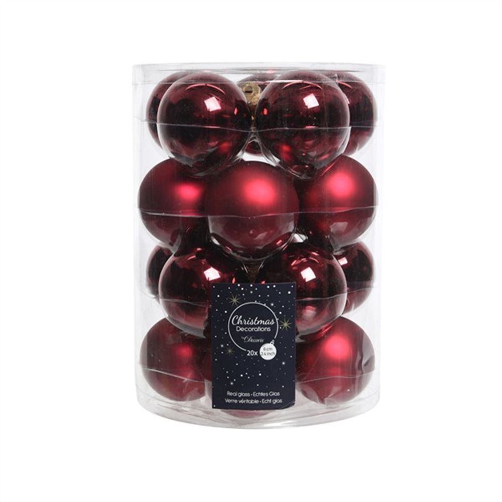 Christbaumkugeln Ochsenblut - dunkelrot - Glanz & Matt - 20 Stück Glas 6 cm Durchmes
