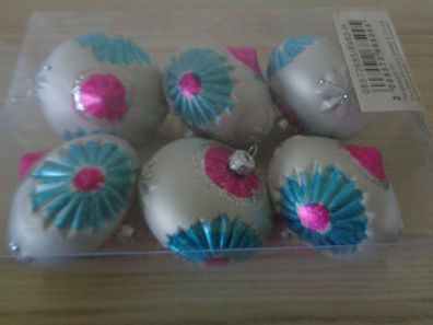 • Baumbehang, Weihnachtskugeln, Christbaumkugeln -6 farbige Kugeln -seltene Form