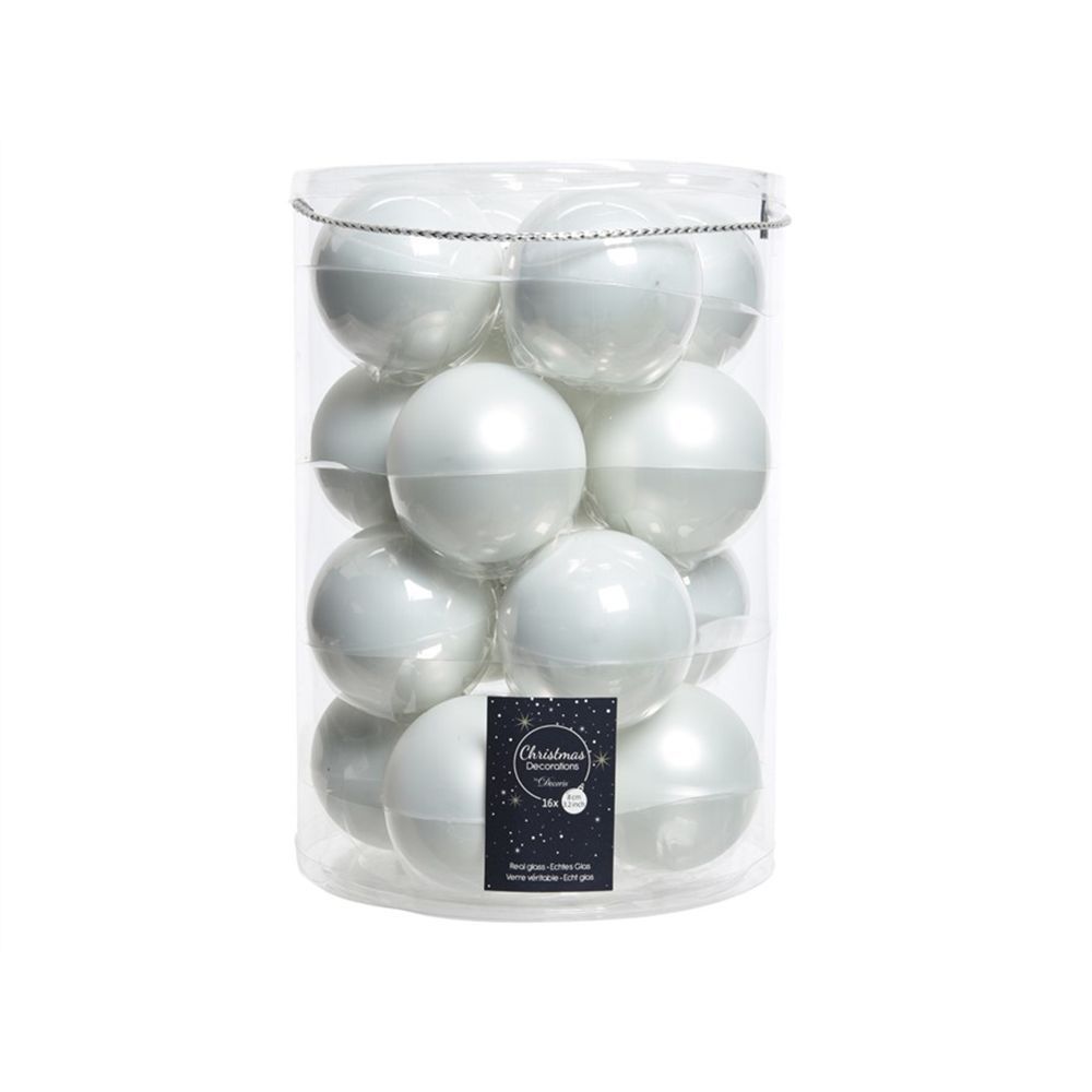 Christbaumkugeln winterweiß Glanz & Matt - 16 Stück Glas 8 cm Durchmesser - 16 Stk. a