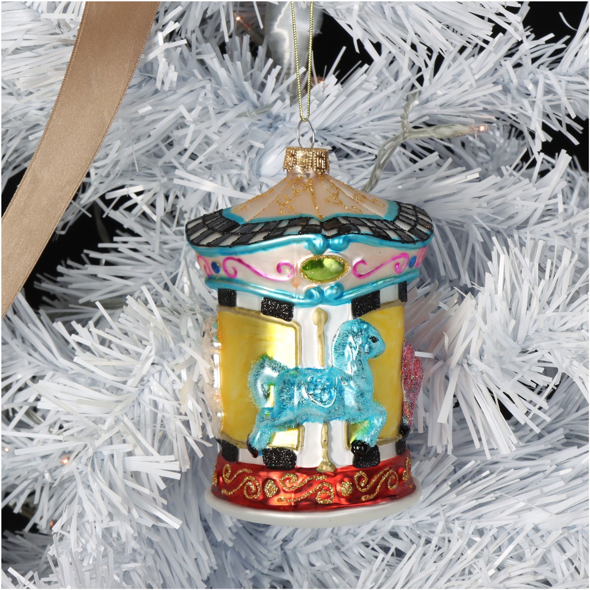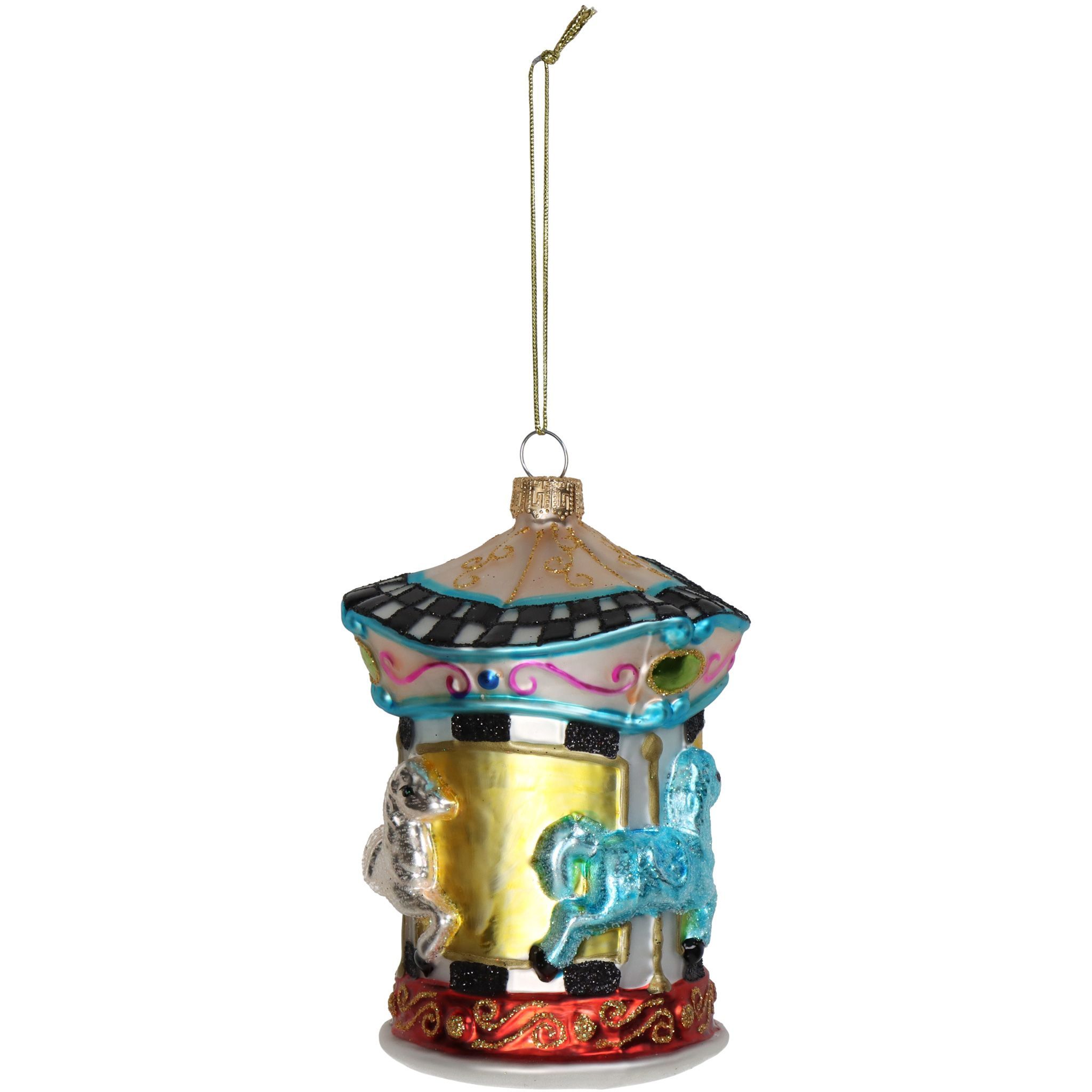 Christbaumschmuck 12cm Glas Pferdekarussell Figur Bunt