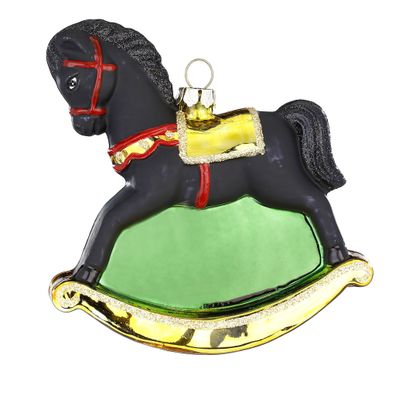 • Christbaumschmuck Schaukelpferd 12cm Glas Figur Schwarz