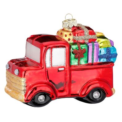 • Christbaumschmuck Glas LKW Transporter mit Geschenken 12cm rot