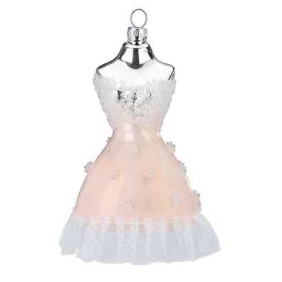 • Christbaumschmuck Glas Cocktailkleid mit Spitze 12cm rosa