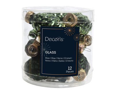 • Christbaumschmuck Zapfen 6cm Glas 12 Stück - Piniengrün